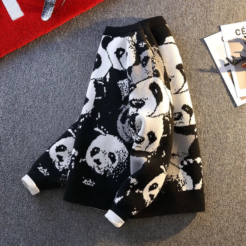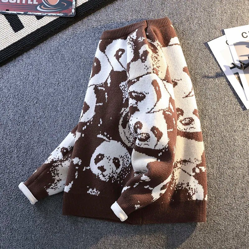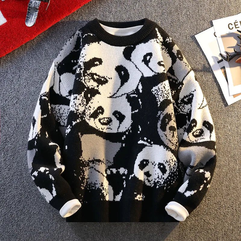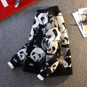 The Panda Print Knitted Sweater combines designer quality with casual comfort.