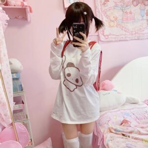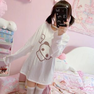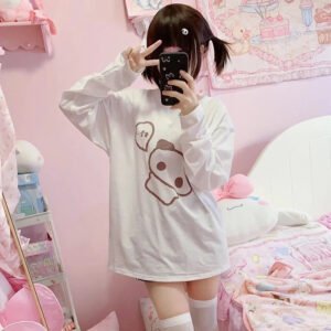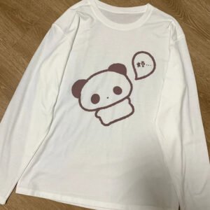 The Y2K Panda Print Long-Sleeved Top blends sweet and playful style with a Harajuku-inspired design.